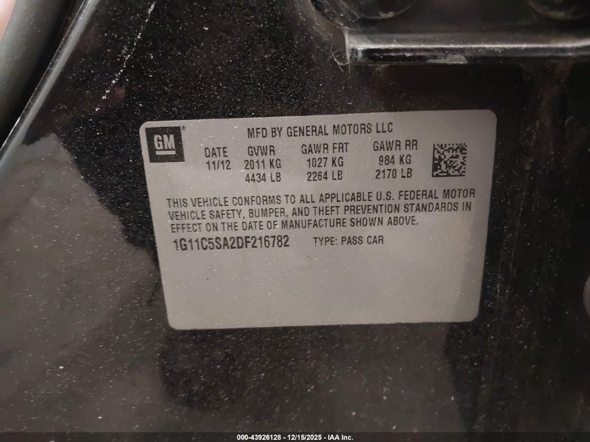 2013 CHEVROLET MALIBU - 1G11C5SA2DF216782, колір - Чорний, 2.5, Бензин, Передній привід із США
