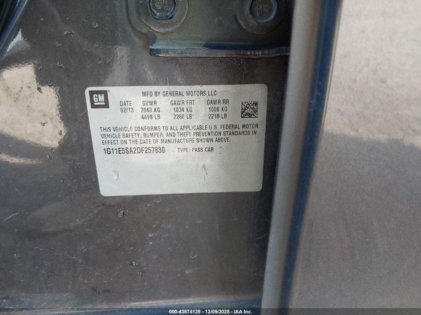 Колір СірийЦиліндри 4Привід Передній привідVIN 1G11E5SA2DF257830Стан Заводиться та їде (перевірено)Ушкодження Передня або задня
