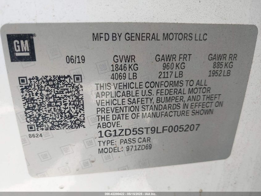 2020 CHEVROLET MALIBU - 1G1ZD5ST9LF005207, колір - Білий, 1.5, Бензин, Передній привід із США