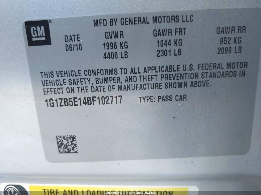 Колір СрібнийЦиліндри 4Привід Передній привідVIN 1G1ZB5E14BF102717Стан Заводиться та їде (перевірено)Ушкодження Звичайний зносДата аукціона 2025-12-22
