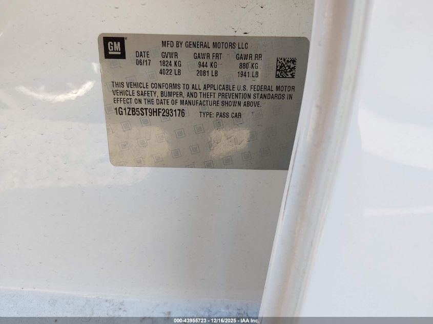 2017 CHEVROLET MALIBU - 1G1ZB5ST9HF293176, колір - Білий, 1.5, Бензин, Передній привід із США