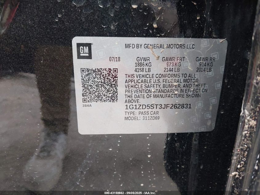 2018 CHEVROLET MALIBU - 1G1ZD5ST3JF262831, колір - Чорний, 1.5, Бензин, Передній привід із США