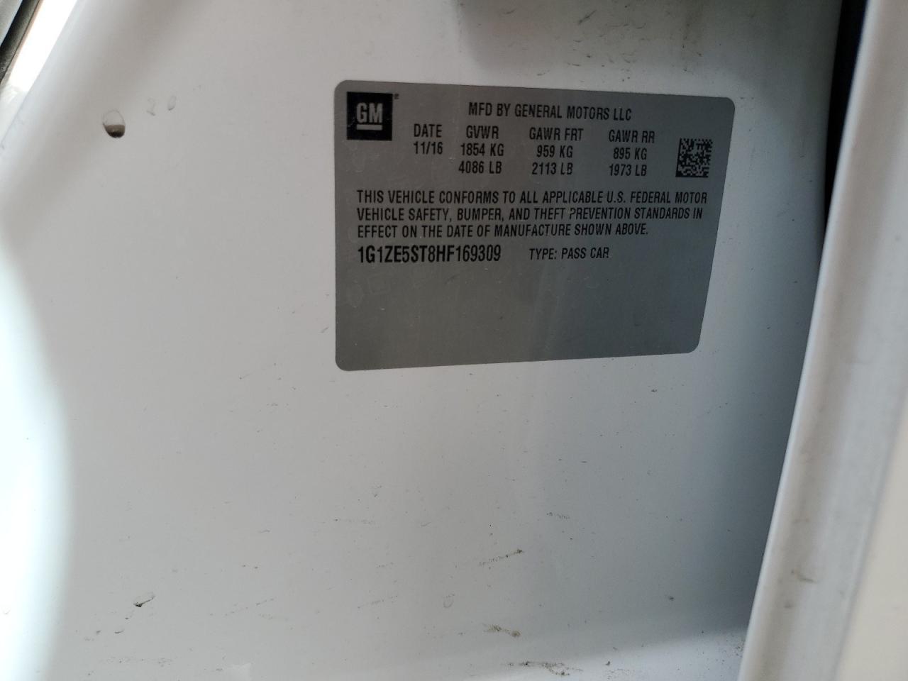 Колір БілийЦиліндри 4VIN 1G1ZE5ST8HF169309Стан Заводиться та їде (перевірено)Ушкодження Незначні