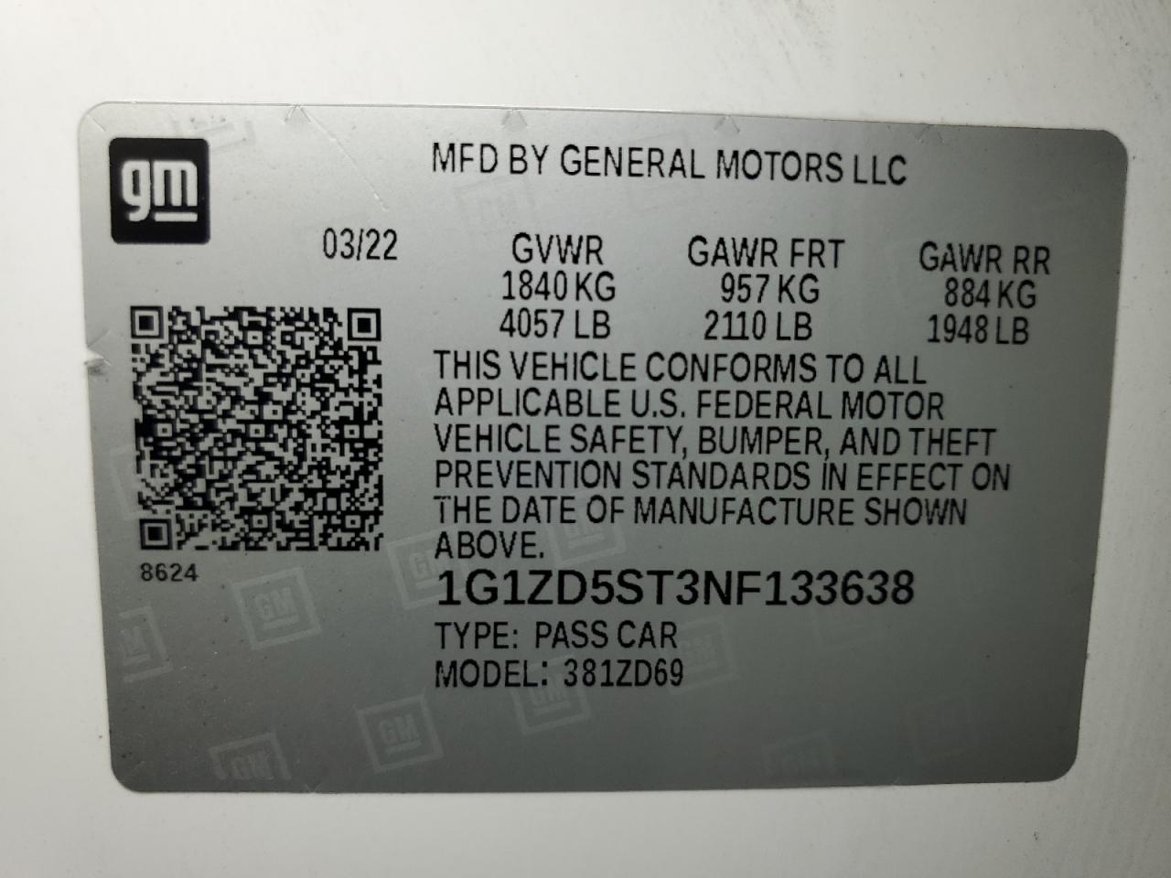2022 CHEVROLET MALIBU - 1G1ZD5ST3NF133638, колір - Білий, 1.5, Бензин, із США