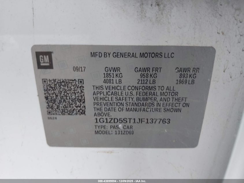 2018 CHEVROLET MALIBU - 1G1ZD5ST1JF137763, колір - Білий, 1.5, Бензин, Передній привід із США