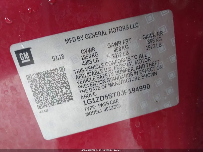 2018 CHEVROLET MALIBU LT