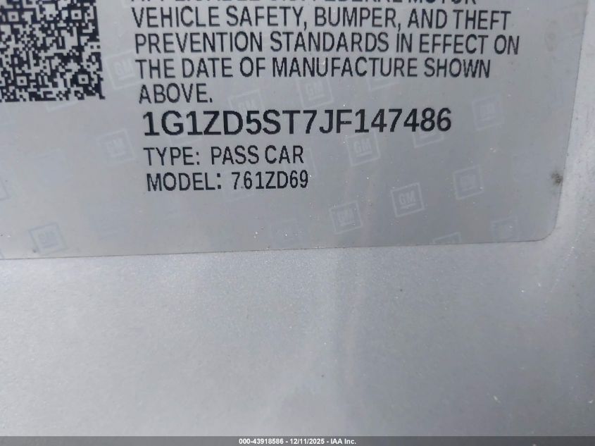 2018 CHEVROLET MALIBU - 1G1ZD5ST7JF147486, колір - Срібний, 1.5, Бензин, Передній привід із США
