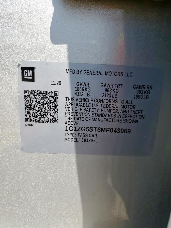 2021 CHEVROLET MALIBU - 1G1ZG5ST6MF043969, колір - Срібний, 1.5, Бензин, із США
