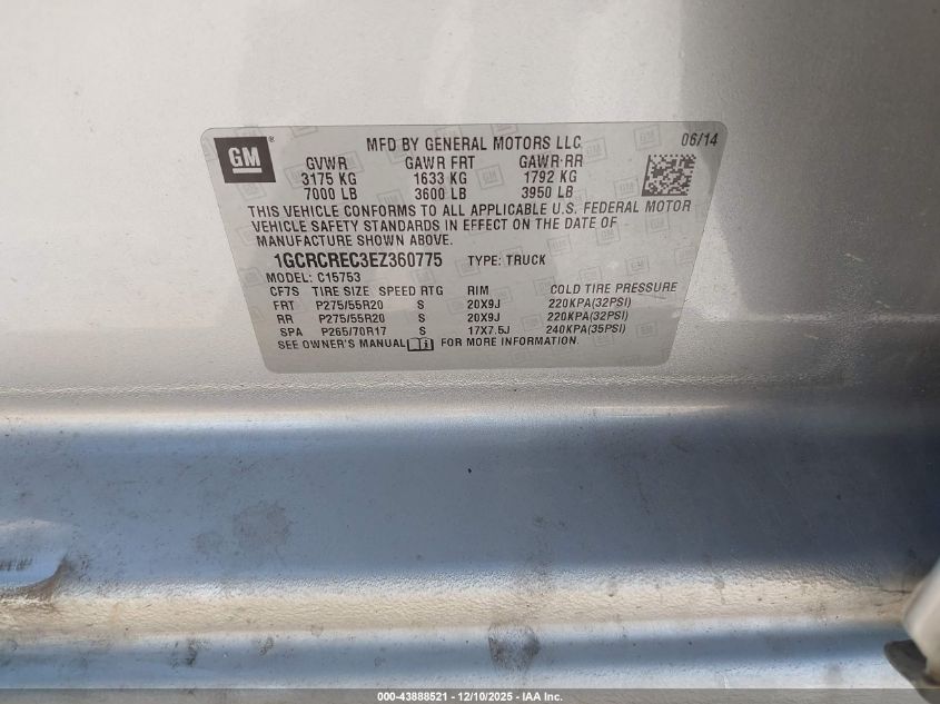 2014 CHEVROLET SILVERADO 1500 - 1GCRCREC3EZ360775, колір - Срібний, 5.3, Бензин, із США