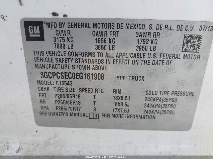 Колір БілийЦиліндри 8VIN 3GCPCSEC0EG161908Стан СтаціонарноУшкодження По всьому авто