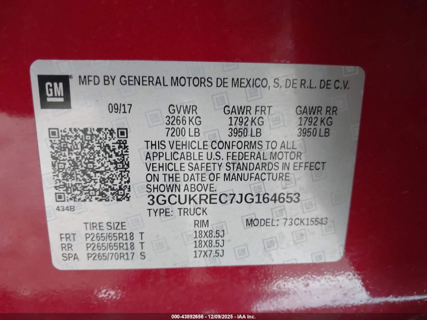 Колір БордовийЦиліндри 8Привід Повний привідVIN 3GCUKREC7JG164653Стан СтаціонарноУшкодження Передня або задня