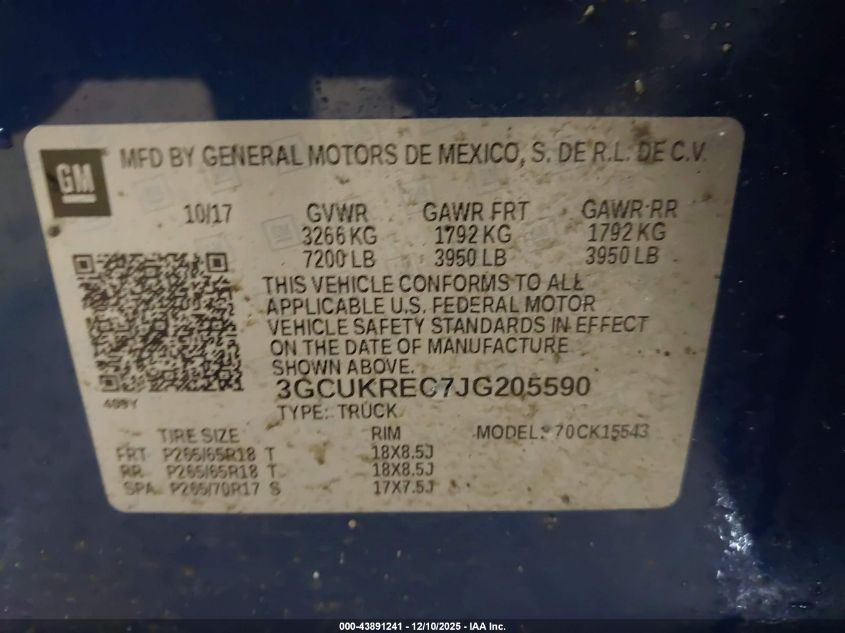 Колір СинійЦиліндри 8Привід Повний привідVIN 3GCUKREC7JG205590Стан Заводиться та їде (перевірено)Ушкодження Ліва сторона
