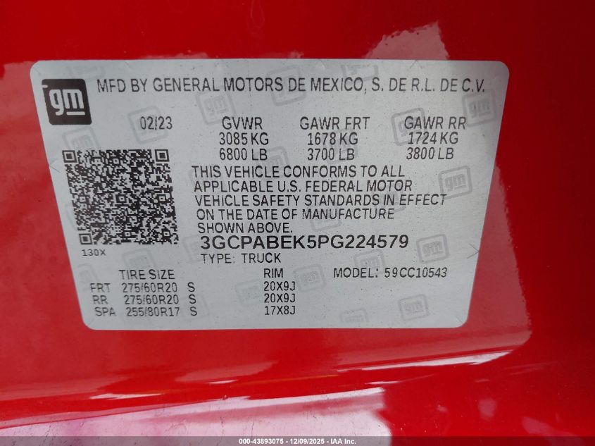 2023 CHEVROLET SILVERADO 1500 - 3GCPABEK5PG224579, колір - Червоний, 2.7, Бензин, із США