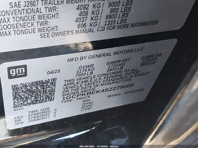2025 CHEVROLET SILVERADO 1500 - 1GCPKBEK4SZ279000, колір - Чорний, 2.7, Бензин, Повний привід із США