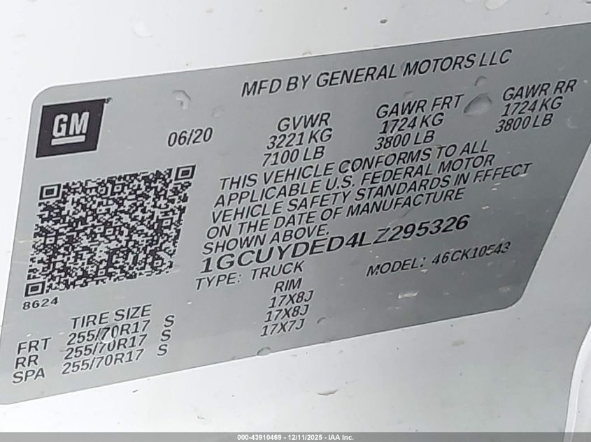 Колір БілийЦиліндри 8Привід Повний привідVIN 1GCUYDED4LZ295326Стан ЗаводитьсяУшкодження Передня або задня