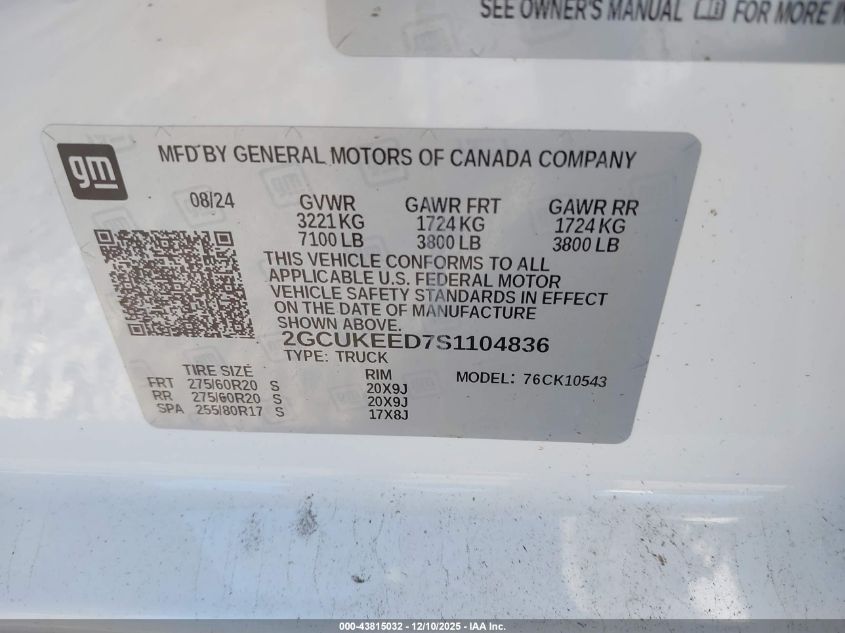 2025 CHEVROLET SILVERADO 1500 - 2GCUKEED7S1104836, колір - Білий, 5.3, Бензин, Повний привід із США