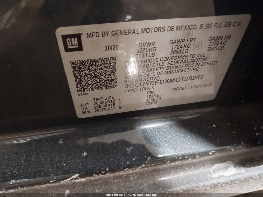 Колір СинійЦиліндри 8Привід Повний привідVIN 3GCUYEEDXMG128993Стан Заводиться та їде (перевірено)Ушкодження Передня або задня