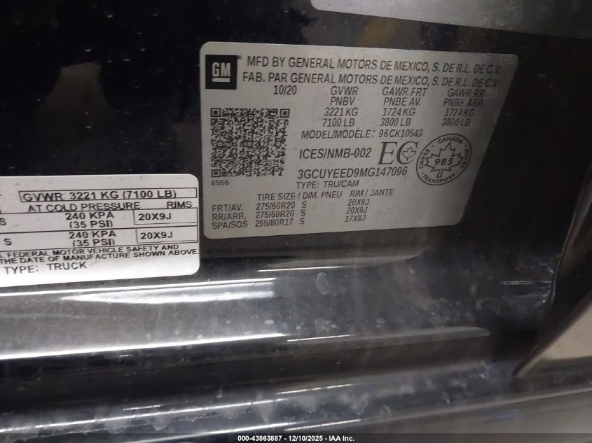 Колір ЧорнийЦиліндри 8Привід Повний привідVIN 3GCUYEED9MG147096Стан Заводиться та їде (перевірено)Ушкодження Передня або задня