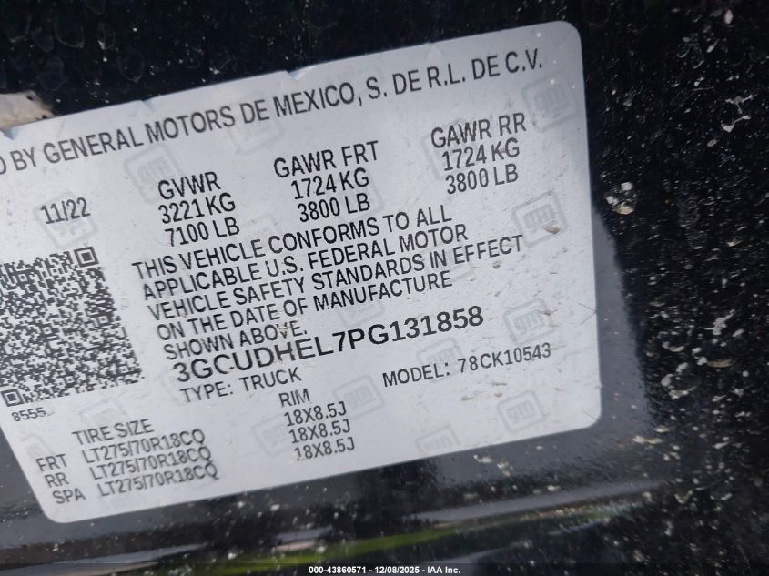 2023 CHEVROLET SILVERADO 1500 - 3GCUDHEL7PG131858, колір - Чорний, 6.2, Бензин, Повний привід із США