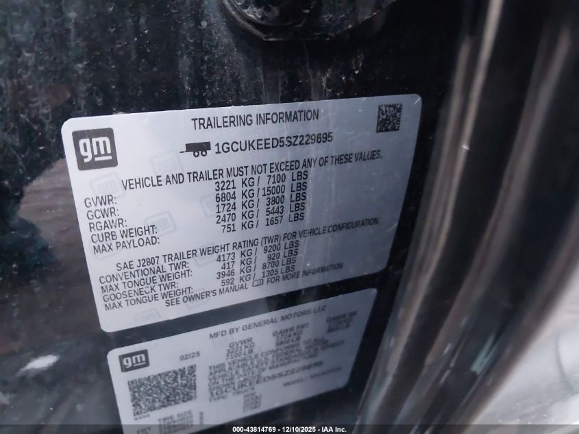 2025 CHEVROLET SILVERADO 1500 - 1GCUKEED5SZ229695, колір - Чорний, 5.3, Бензин, Повний привід із США