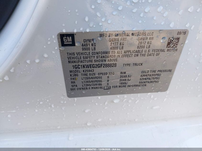 2016 CHEVROLET SILVERADO 2500 - 1GC1KWEG2GF288828, колір - Білий, 6.0, Бензин, Повний привід із США