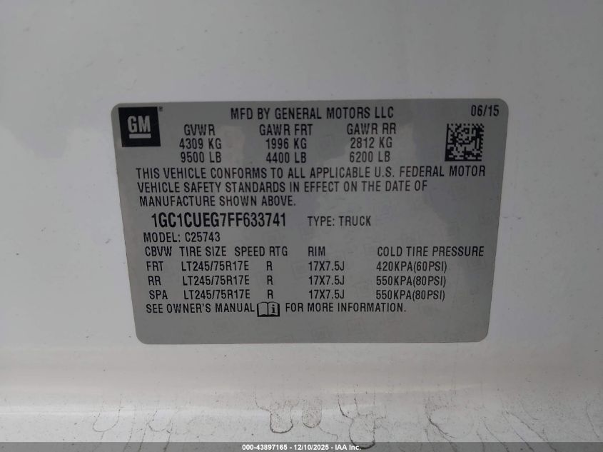 Колір БілийЦиліндри 8VIN 1GC1CUEG7FF633741Стан Заводиться та їде (перевірено)Ушкодження Задня