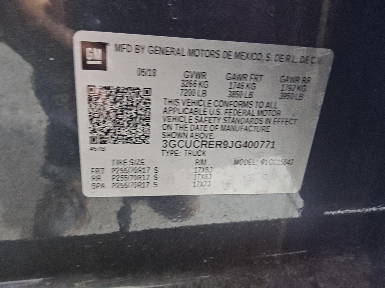 Колір ЗеленийЦиліндри 8Привід Задній привідVIN 3GCUCRER9JG400771Стан Заводиться та їде (перевірено)Ушкодження НезначніДата аукціона 2025-10-09