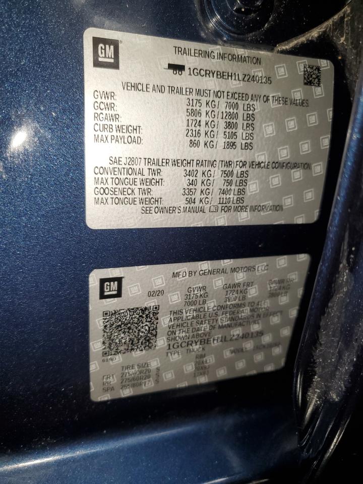 2020 CHEVROLET SILVERADO - 1GCRYBEH1LZ240135, колір - Синій, 4.3, Бензин, 4x4 з заднім приводом із США