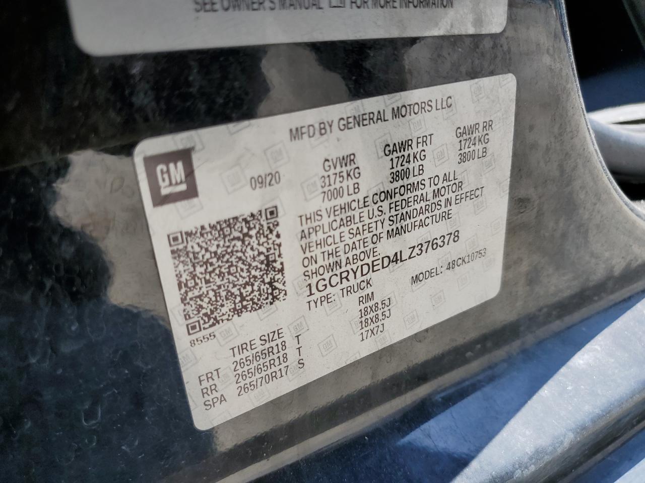 2020 CHEVROLET SILVERADO - 1GCRYDED4LZ376378, колір - Чорний, 5.3, Бензин, 4x4 з заднім приводом із США