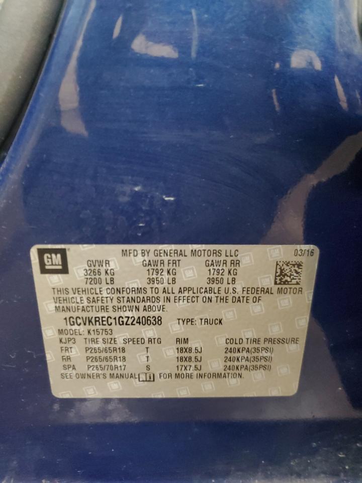 2016 CHEVROLET SILVERADO - 1GCVKREC1GZ240638, колір - Синій, 5.3, Бензин, 4x4 з заднім приводом із США