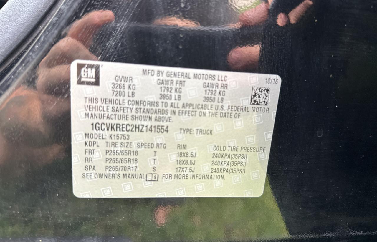 Колір ЧорнийЦиліндри 8Привід 4x4 з заднім приводомVIN 1GCVKREC2HZ141554Стан Заводиться та їде (перевірено)Ушкодження НезначніДата аукціона 2025-10-08
