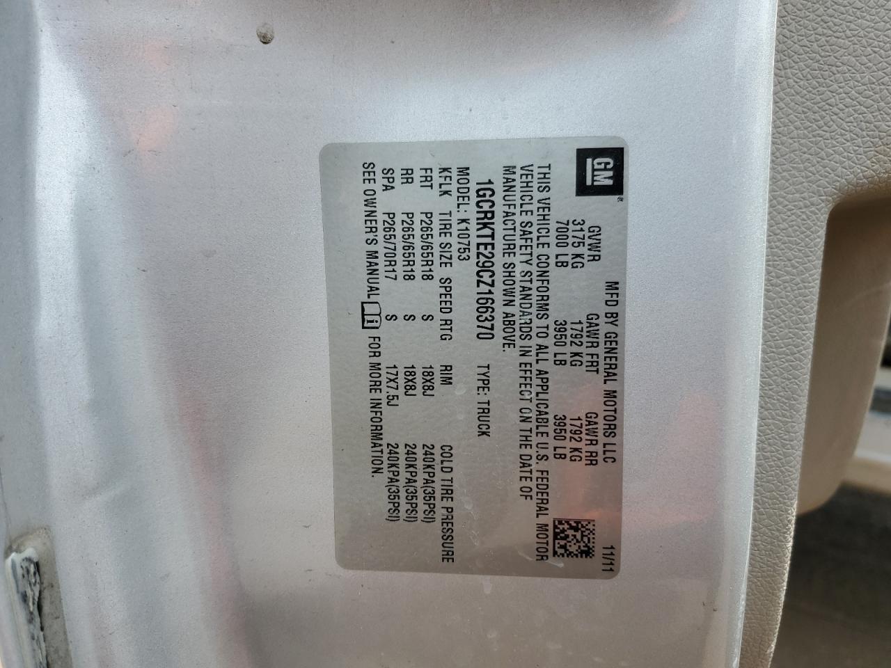 2012 CHEVROLET SILVERADO - 1GCRKTE29CZ166370, колір - Білий, 6.2, Бензин, 4x4 з заднім приводом із США