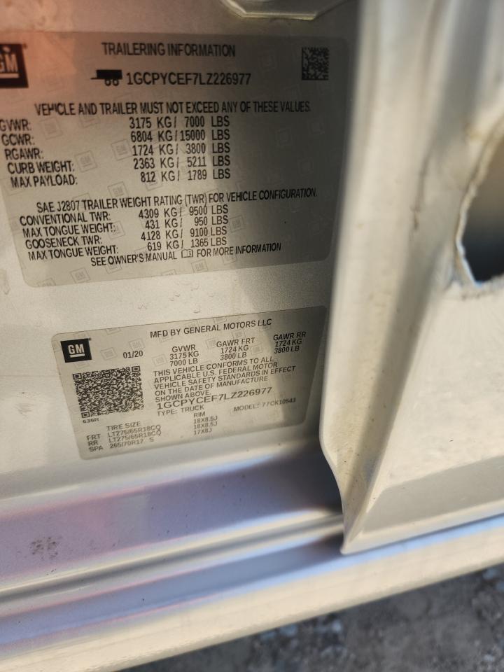 2020 CHEVROLET SILVERADO - 1GCPYCEF7LZ226977, колір - Срібний, 5.3, Бензин, 4x4 з заднім приводом із США