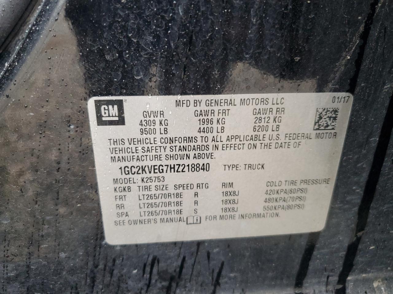 Колір ЧорнийЦиліндри 8Привід 4x4 з заднім приводомVIN 1GC2KVEG7HZ218840Стан ЗаводитьсяУшкодження По всьому авто