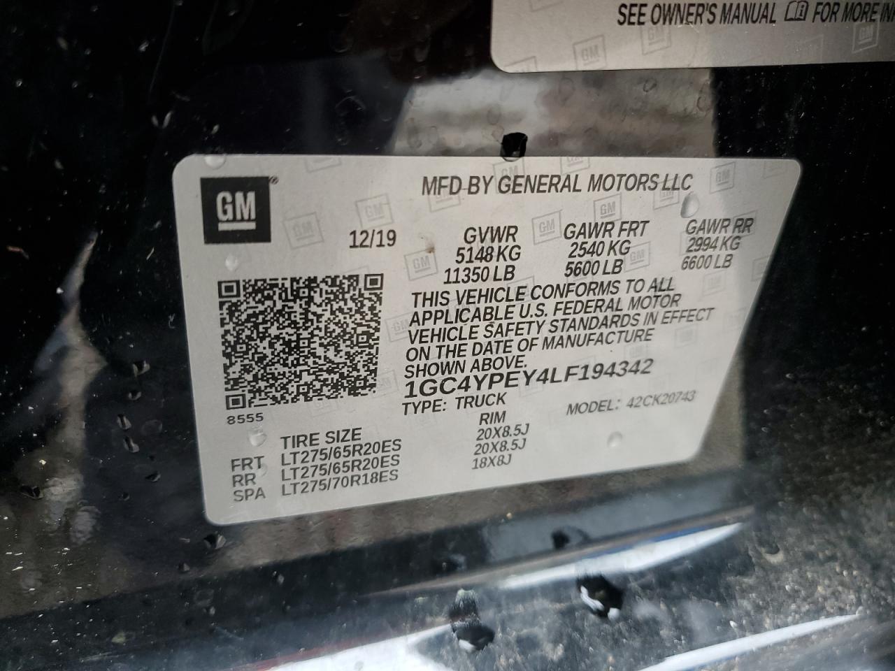 2020 CHEVROLET SILVERADO - 1GC4YPEY4LF194342, колір - Чорний, 6.6, Дизель, 4x4 з заднім приводом із США