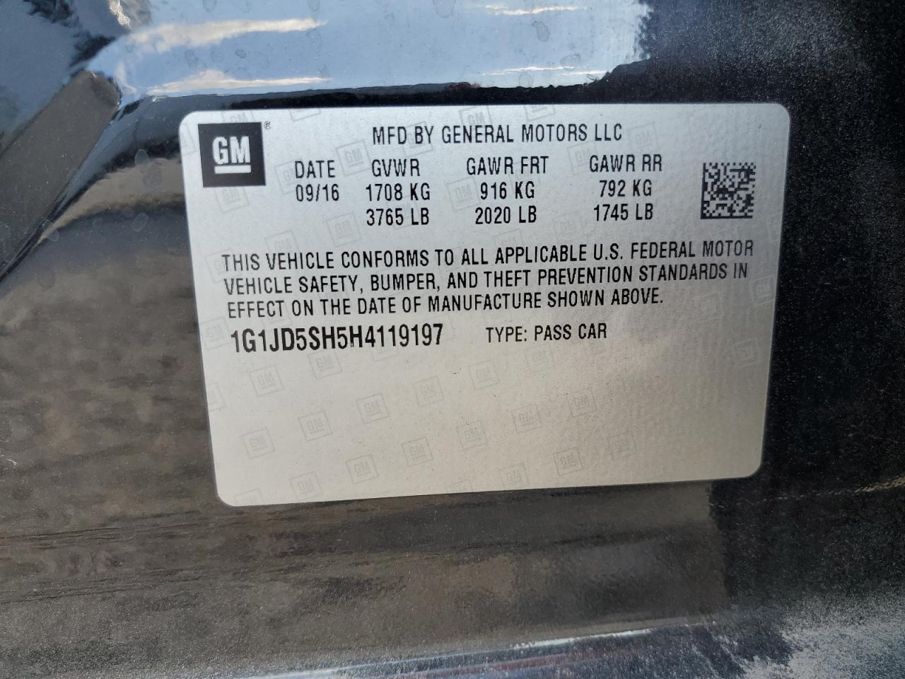 2017 CHEVROLET SONIC - 1G1JD5SH5H4119197, колір - Чорний, 1.8, Бензин, із США