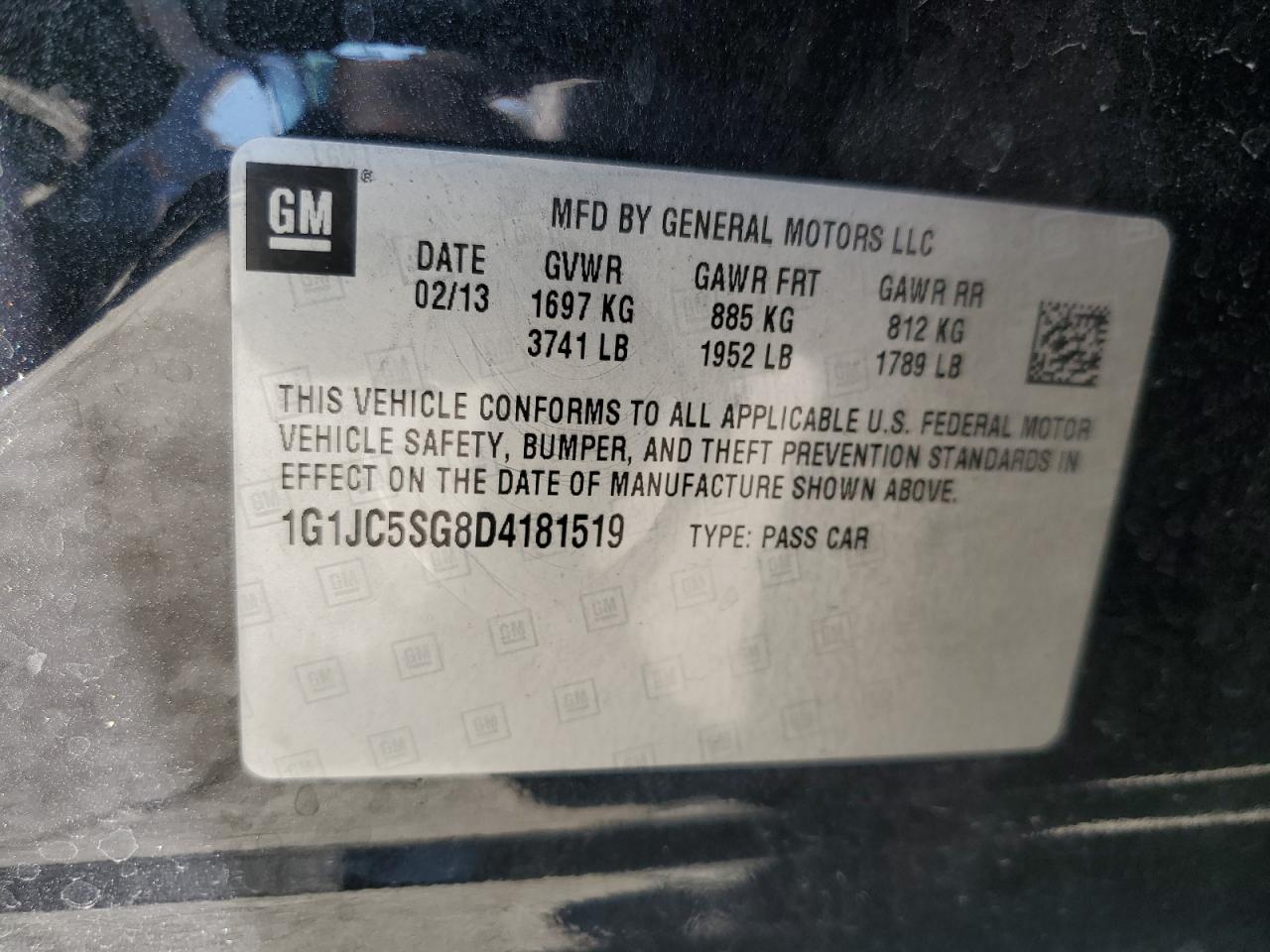 Колір ЧорнийЦиліндри 4VIN 1G1JC5SG8D4181519Стан НевідомоУшкодження ВандалізмДата аукціона 2025-10-08