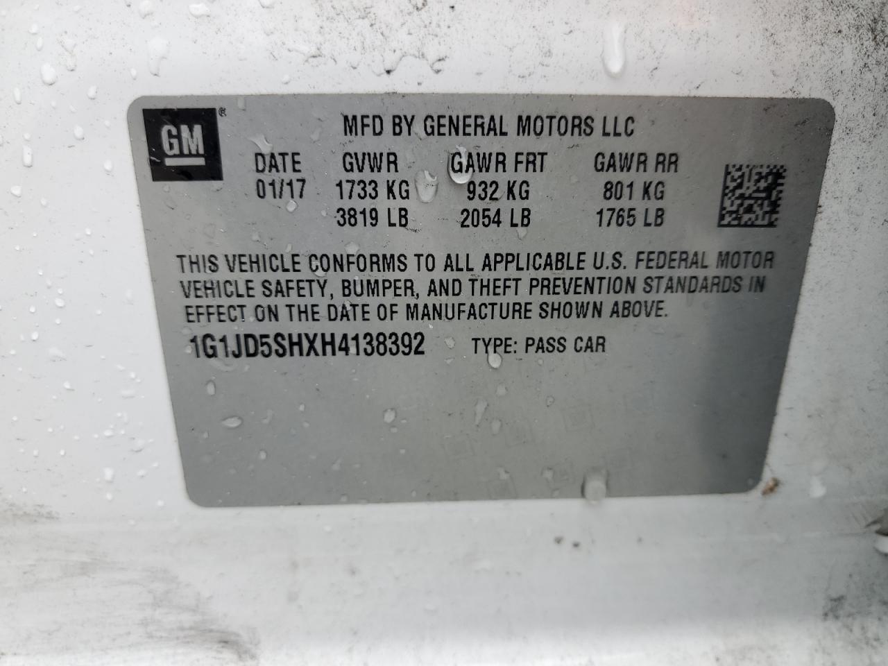 2017 CHEVROLET SONIC - 1G1JD5SHXH4138392, колір - Білий, 1.8, Бензин, із США