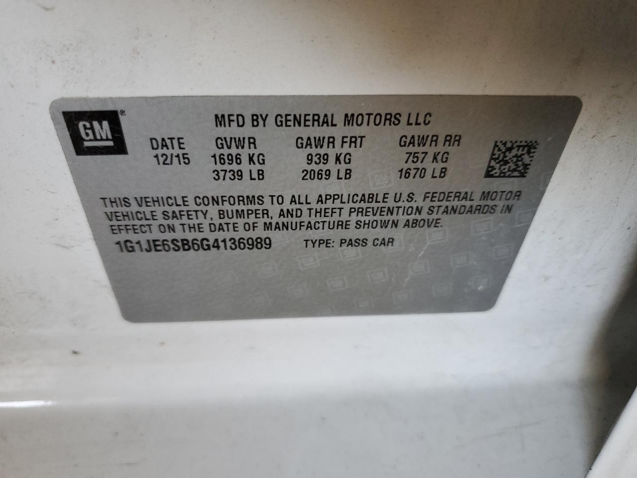 2016 CHEVROLET SONIC - 1G1JE6SB6G4136989, колір - Білий, 1.4, Бензин, із США