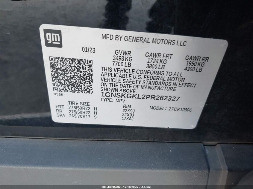 2023 CHEVROLET SUBURBAN - 1GNSKGKL2PR262327, колір - Чорний, 6.2, Бензин, Повний привід із США