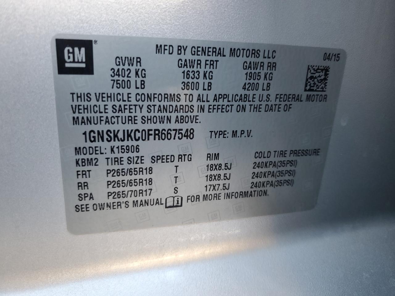 Колір СрібнийЦиліндри 8Привід 4x4 з заднім приводомVIN 1GNSKJKC0FR667548Стан Заводиться та їде (перевірено)Ушкодження Передня або задня