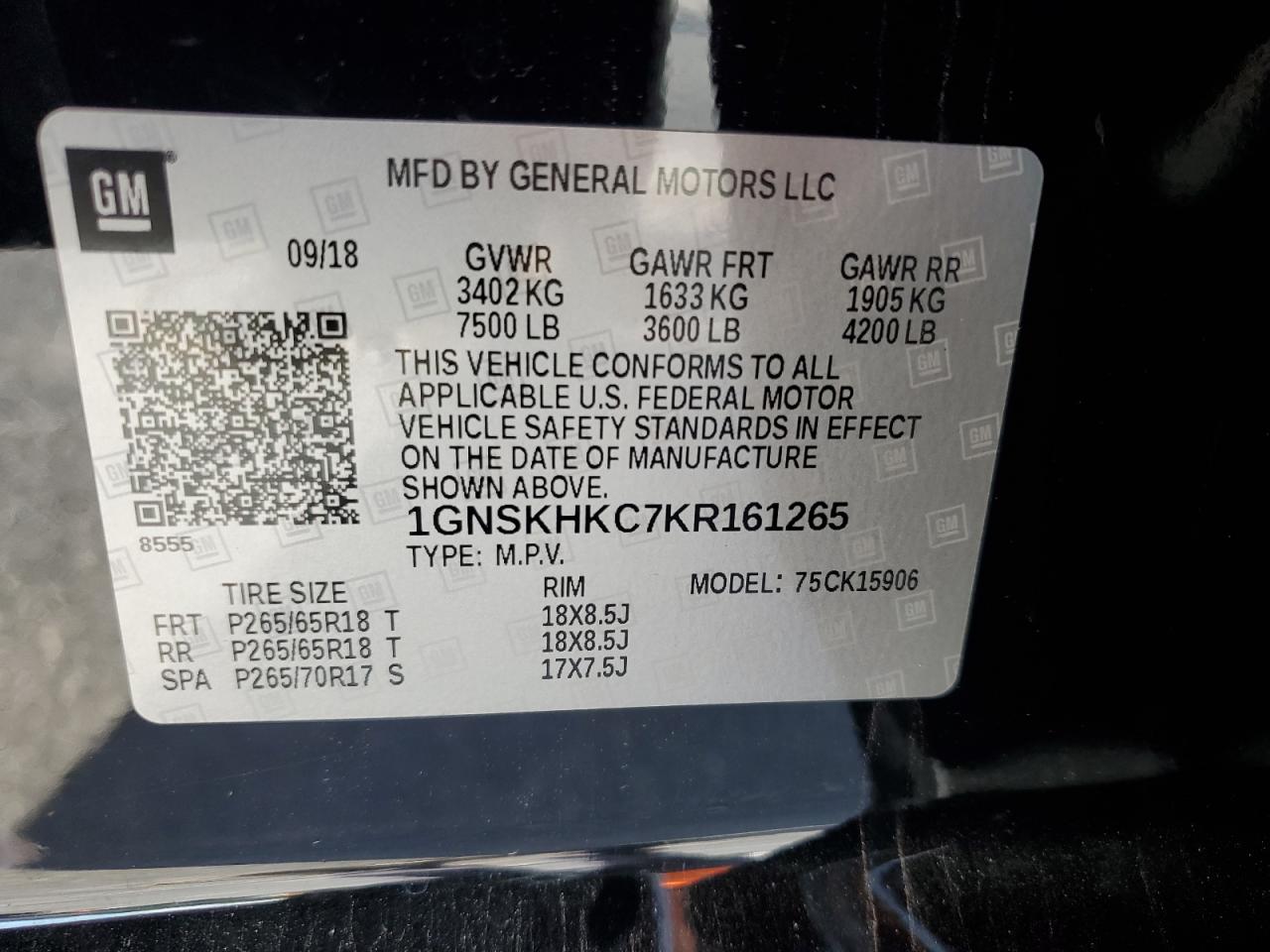 2019 CHEVROLET SUBURBAN - 1GNSKHKC7KR161265, колір - Чорний, 5.3, Бензин, 4x4 з заднім приводом із США