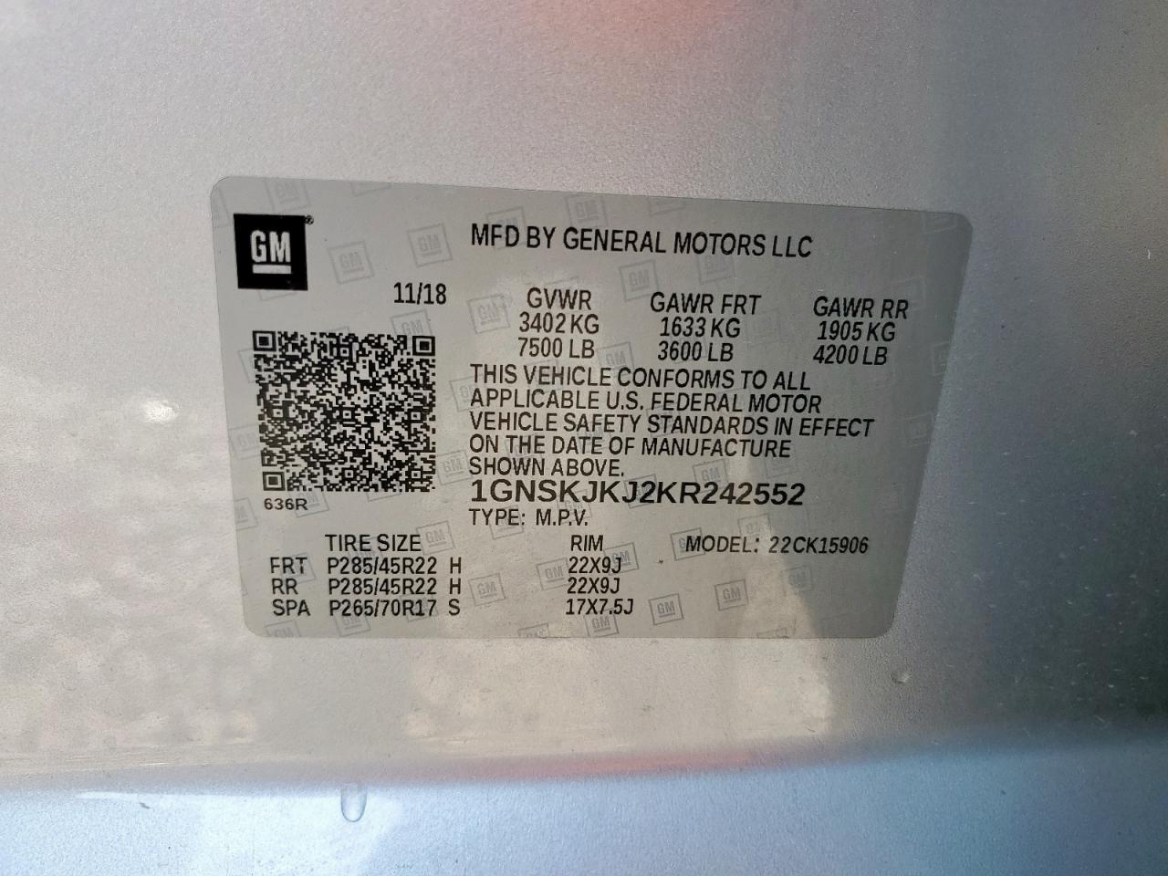 2019 CHEVROLET SUBURBAN - 1GNSKJKJ2KR242552, колір - Срібний, 6.2, Бензин, 4x4 з заднім приводом із США