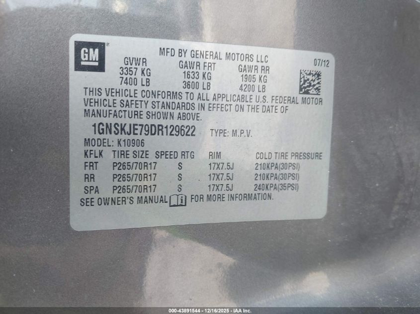 Колір КоричневийЦиліндри 8Привід Повний привідVIN 1GNSKJE79DR129622Стан НевідомоУшкодження Звичайний знос