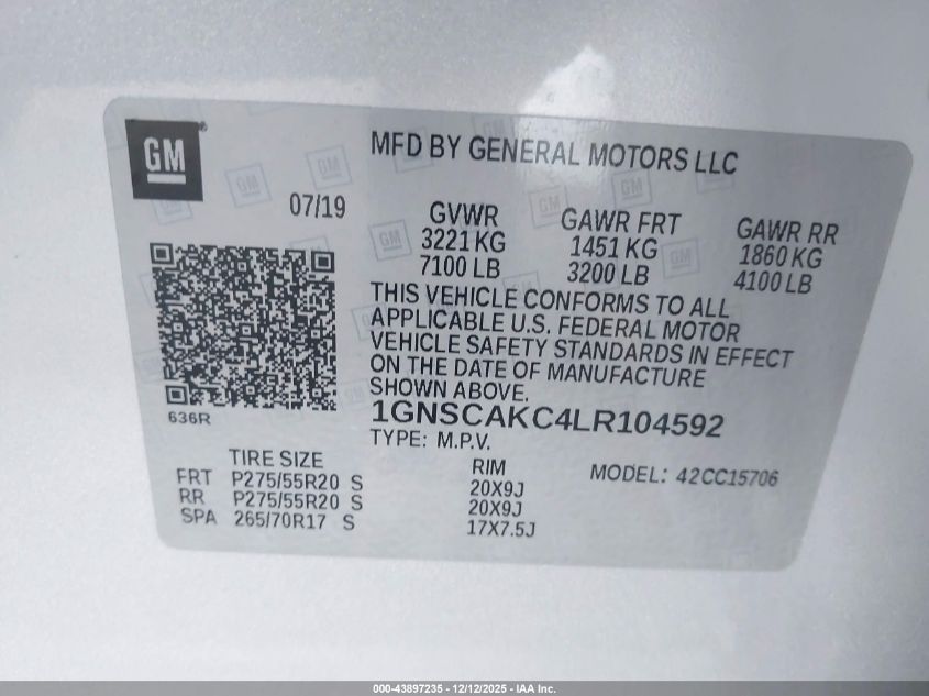 Колір СрібнийЦиліндри 8VIN 1GNSCAKC4LR104592Стан Заводиться та їде (перевірено)Ушкодження Ліва сторона