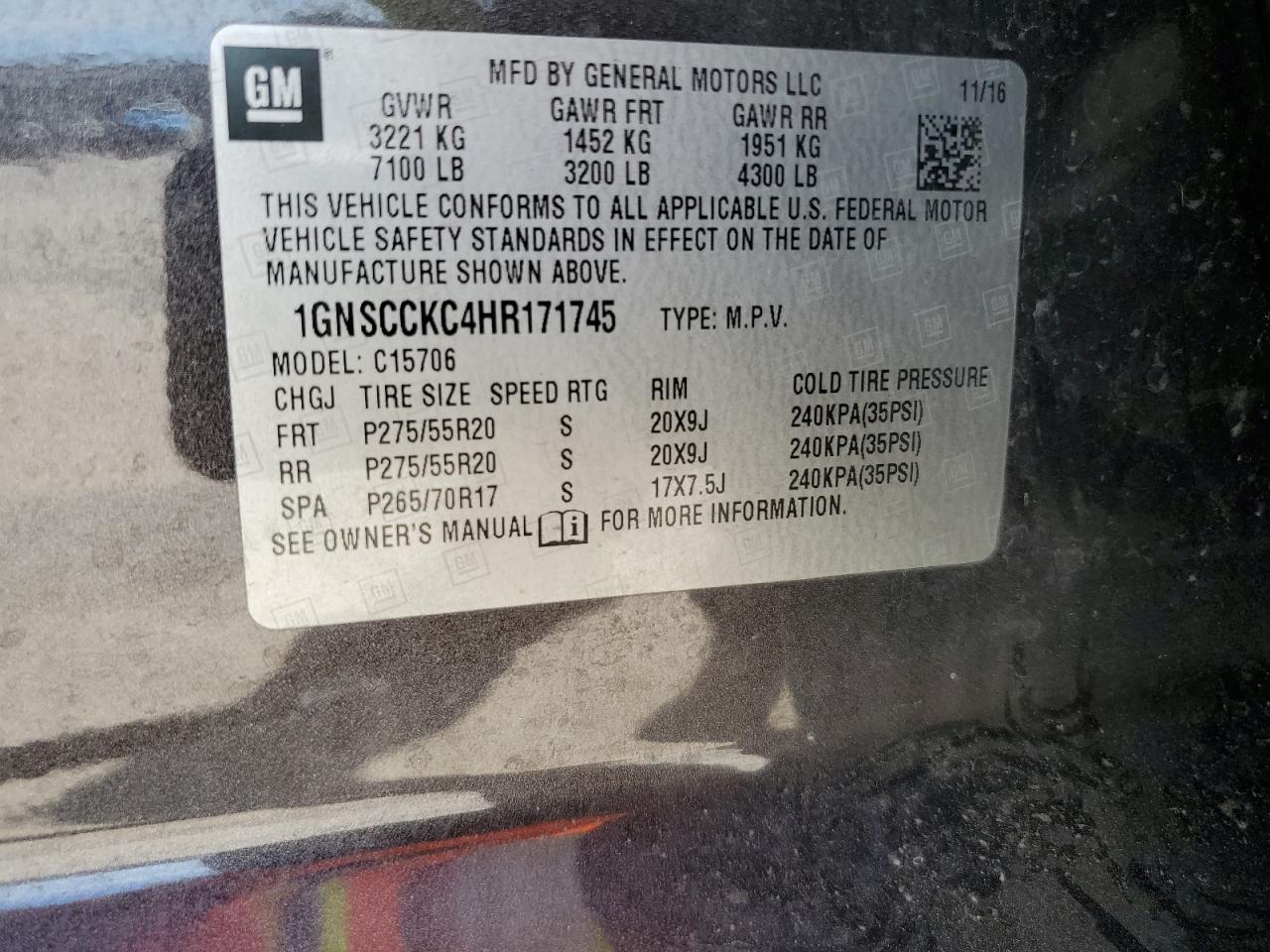 Колір ЧорнийЦиліндри 8Привід Задній привідVIN 1GNSCCKC4HR171745Стан НевідомоУшкодження По всьому авто