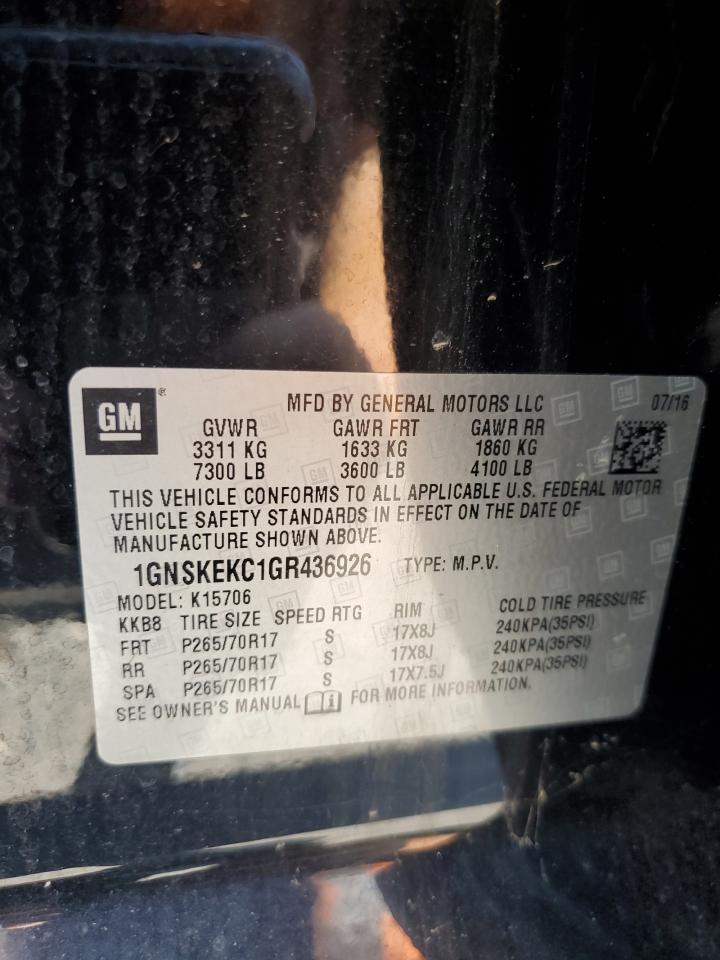 2016 CHEVROLET TAHOE - 1GNSKEKC1GR436926, колір - Чорний, 5.3, Бензин, 4x4 з заднім приводом із США