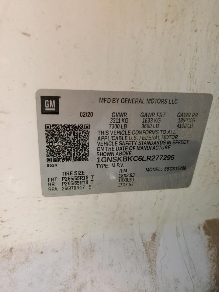 2020 CHEVROLET TAHOE - 1GNSKBKC6LR277295, колір - Білий, 5.3, Бензин, 4x4 з заднім приводом із США