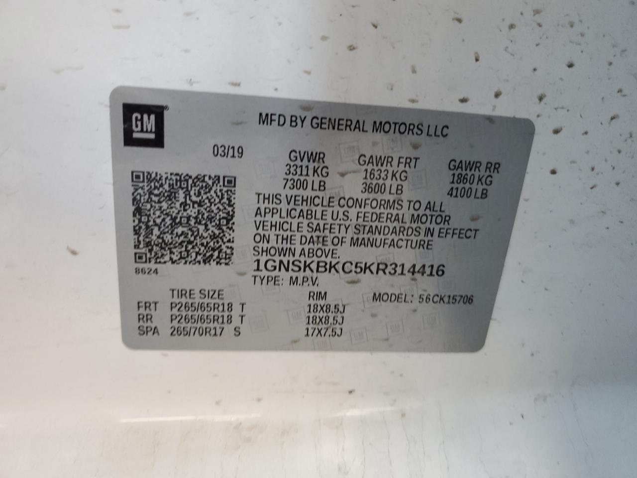 2019 CHEVROLET TAHOE - 1GNSKBKC5KR314416, колір - Білий, 5.3, Бензин, 4x4 з заднім приводом із США