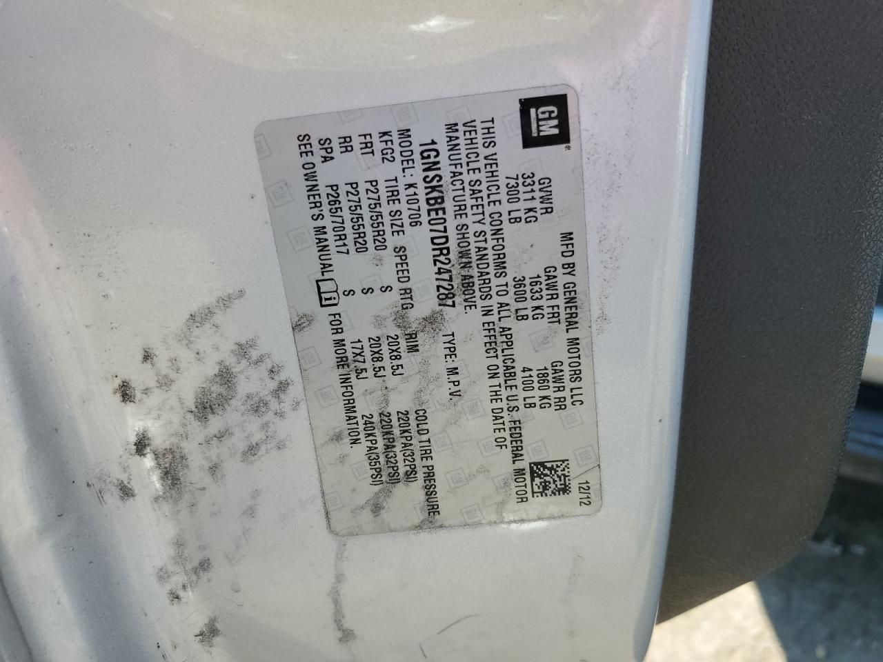 Колір СрібнийЦиліндри 8Привід 4x4 з заднім приводомVIN 1GNSKBE07DR247287Стан НевідомоУшкодження Пожежа двигуна